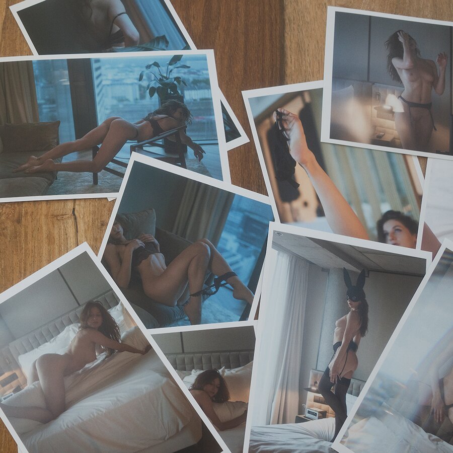 For the launch — how that sounds, like I'm selling vacuum cleaners — I've set the price at 99 euros. That's less than some people spend on dinner. For twelve hand-selected, high-quality printed photographs of one of your favorite models. Packaged like a love letter from another time.